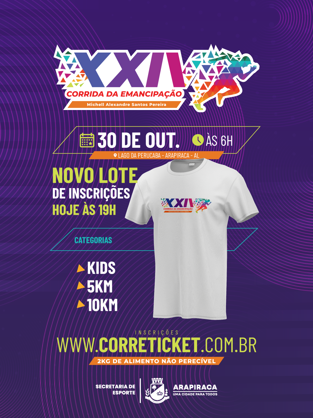 O que: Novo lote de inscrições da 24ª Corrida da Emancipação de Arapiraca