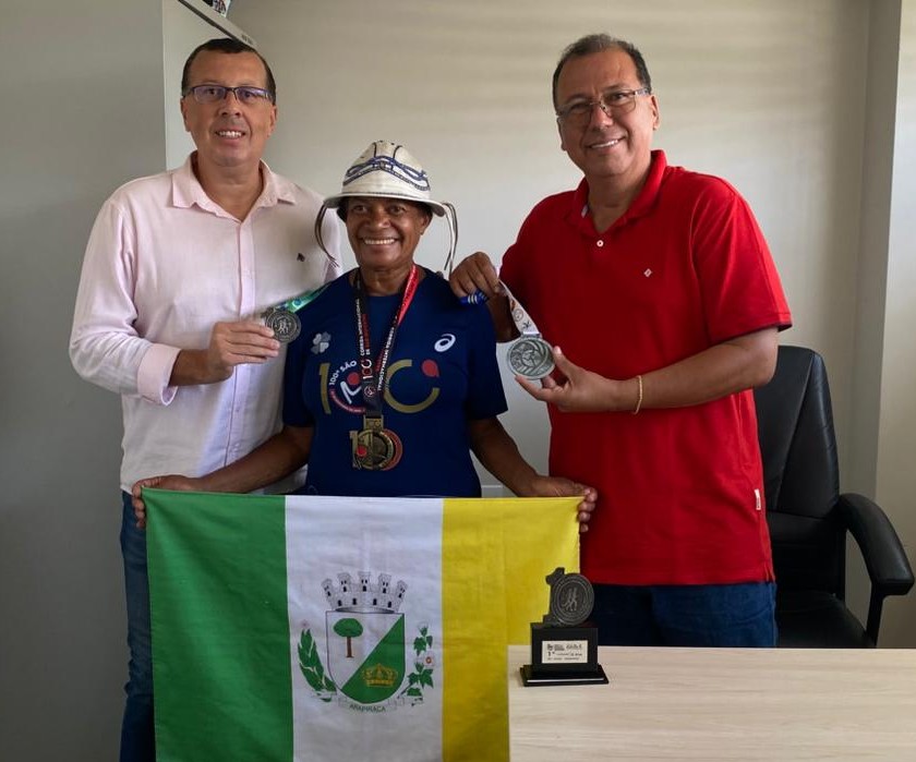 A multimaratonista arapiraquense mostrou ao secretário Fabiano Leão as medalhas que ela conquistou ao participar de duas corridas internacionais e a medalha vencedora da Corrida da Emancipação Política do município de São José da Tapera, no Sertão de Alagoas.